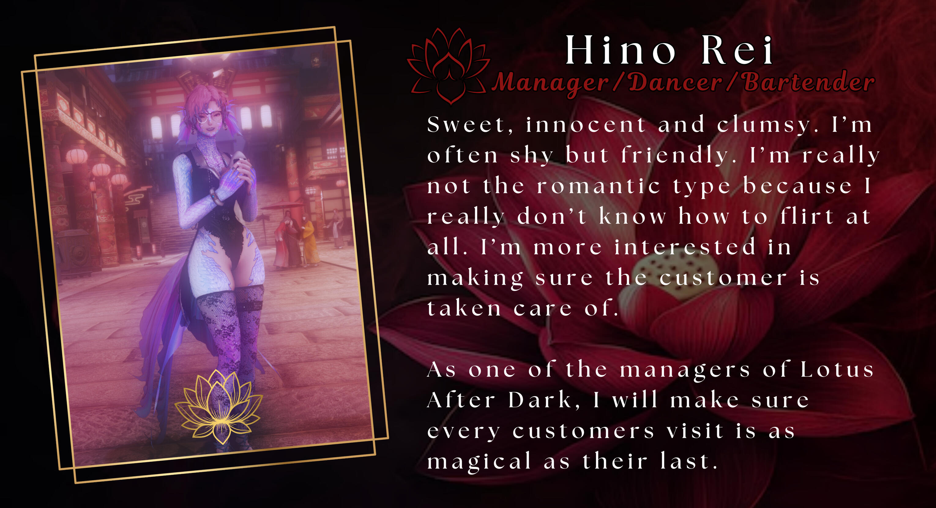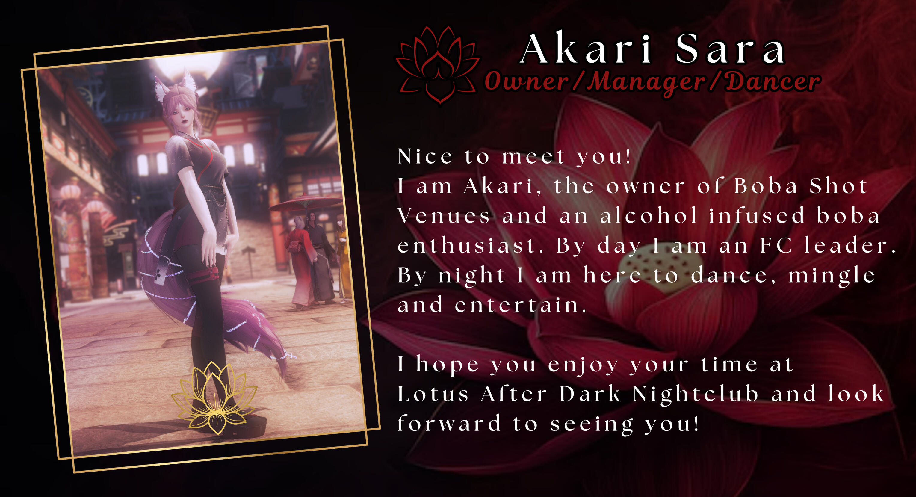 Lotus After Dark is an FC owned venue where elegance meets mystery beneath the glow of lantern light. Inspired by a geisha nightlife, we offer a curated experience of refined drinks, ambient indulgence, and immersive entertainment.Our venue welcomes you into a world of silk and shadow, where dancers move like drifting petals and our courtesans provide attentive personalised company. Whether you seek quiet conversation, lively entertainment, or a moment to lose yourself in the atmosphere, Lotus After Dark is your escape from the ordinary.Enjoy our signature drinks, indulge in our curated menu, try your luck with our games, or simply unwind in a setting designed to captivate the senses.Step beyond the veil… and let the night of seductive temptation unfold.